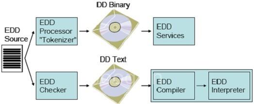 二进制 EDDL 使用“表意器”处理,变成一种压缩的二进制格式文件,防止出现暂时和并发的错误。这个编辑过程也包括进行EDDL语法等的检查。表意的文件相对比较小,因此设备类型文件和不同版本文件也可以存储到一个手持通信器或设备本身的闪存之中,如果需要,软件可以通过设备进行上载。