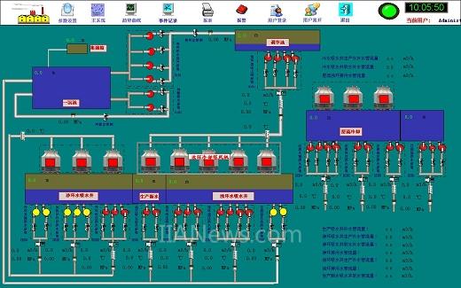 通过水处理监控系统,可以在一幅监控画面中非常方便地知道现场的生产情况.本系统数据监视的内容有:电流、吸水池液位、压力、温度、流量、水泵运行状态、阀门状态等参数。