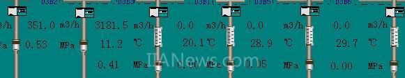 模拟量数据在水处理监控系统监控画面“主系统”中都已经显示出来了,包含文字说明和单位,其中液位还以图形化百分比填充方式显示液位的变化,非常直观,当该模拟量如液位发生超限(低于低限和高于高限时)发生报警,以画面闪烁和声音方式提示控制室值班人员。