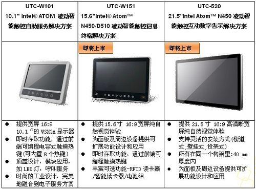 研华UTC系列智能触控电脑采用Intel® Atom™凌动处理器支持到1.6GHz,DDR2内存可扩充到2GB,并支持千兆以太网连接。其无风扇、低功耗的设计,拥有工业级的高可靠性,可24小时不间断地运作。前面板设计满足IP65/NEMA 4 标准,可防尘防水,方便擦拭。可支持壁挂式、桌面式、货架式等多种安装方式。
