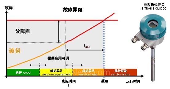 西门子因此推出了一种带Profibus总线的电容式物位计,对现场探头的挂料量(零点电容的变化),探头的磨损(累计电容的变化)等关键性数据进行分析,通过现场总线传输大量诊断信息至上位机,帮助用户指定预测性维护计划(如图5),大大节约用户的维护成本,同时由于减少的更换部件的次数,也等于延长了设备的实际使用寿命。而这种功能对于只能输出开关信号的仪表来说,是很难实现的。