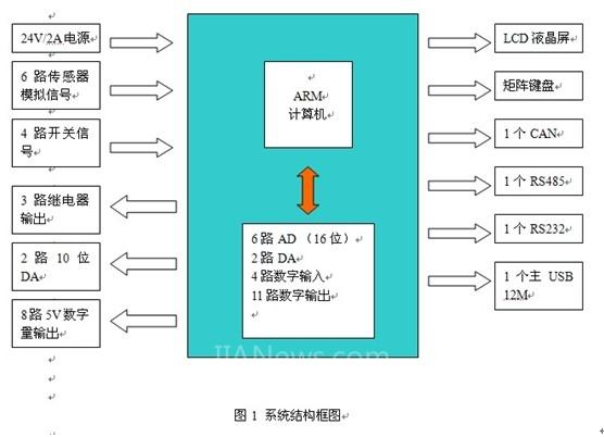 此项目的主要目标是实现一个基于ARM计算机的嵌入式设备,用于对工业配电的电压电流功率等数据进行采集和监控。系统的基本结构如下图:
