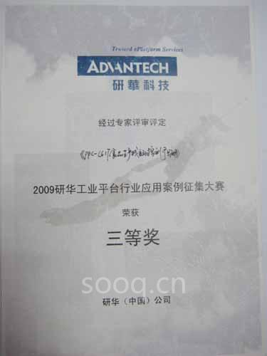 在此后的《2009研华工业系统平台行业应用案例大赛》的评选中,我公司荣获三等奖