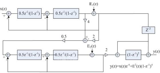 图1:Casecode结构四阶Σ-Δ调制器Z域模型。