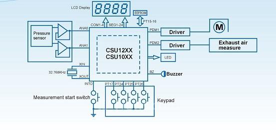 图2:基于CSU12xx和CUS10xx系列SoC的电子血压计。