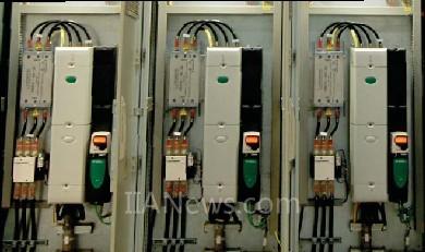 该安装相关的所有设备都是巨型设备。风机电机重量超过6吨,主轴直径为140mm,连接至电机的四条电缆都有三根直径为240mm,690V系统上的电流超过1000A!毫无疑问,该项目所配备的驱动器也同样是大型的—1个Unidrive SP模块化驱动器配备一个主机和八个从模块,它们一起构成了总共1MW的要求。主机控制单元加装了一个与SCADA控制系统直接通信的SM ProfibusDP模块,以及一个远程监控和访问的SM以太网模块。
