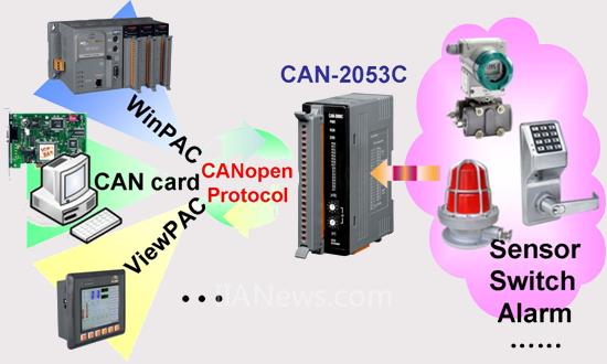 CAN-2053C可通过CANopen Network将开关、警报、传感器等设备的状态及时回传给CANopen master