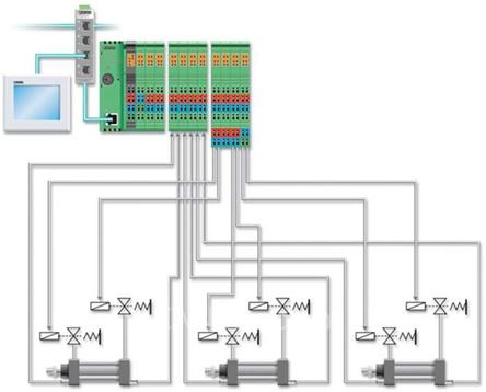 • 连接到接近开关、光传感器、温度传感器、位置传感器、开关与比例阀的外围组件,开关或控制的电气传动和电加热元件,其中控制器可能在与各组件相距的一定距离进行安装。