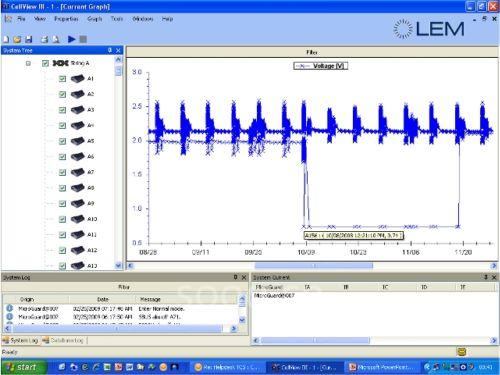 莱姆使用Sentinel电池监测系统对配有800 kVA UPS的广播设备中的电池进行测量。图1给出了一组电池组中的几个电池的输出电压。在这个例子中,每个电池组具有200 块单体电池,能够提供大约440 V的电压。电压变化很大,主要是由于电池条件配置不正确,这一点将在后文进行讨论。