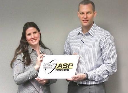 康耐视公司渠道规划经理Cristina Fein为美国弗吉尼亚里士满电气设备公司—康耐视第400家合作伙伴颁发康耐视自动化解决方案提供商(ASP)纪念牌。