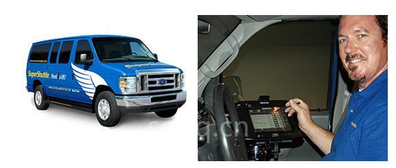 移动车载平板PC, , 装备 GSM, GPRS, HSDPA, WCDMA Wi-Fi 和 Bluetooth功能,因此 SuperShuttle的司机可以随时取得联系,在他们去任何地方的时候。接机位置的更新是和个人预订信息的保留是实时连机的。随同空间导航工具包 Telogis Geobase提供的功能,系统可以及时自动优化路线。