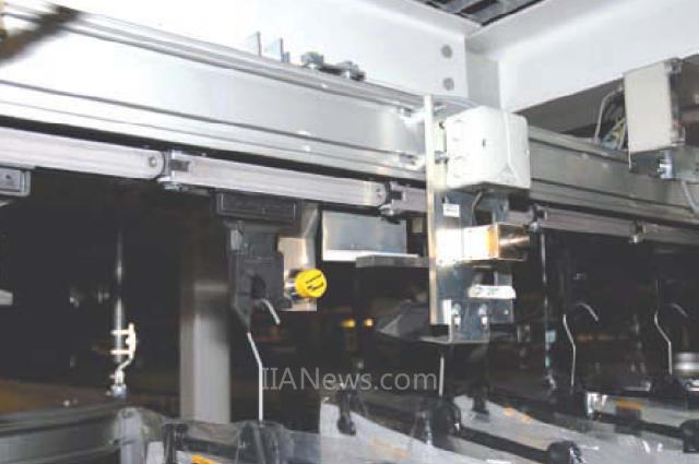 系统采集数据,决定每条裤子的运送路线。依照这一路线计划,滑道将相应的裤子送出产品队列,以备按照订单发货。这些产品由电磁随机存储器拣出,它能将运输滑道推送至岔轨。