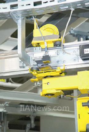 众所周知,汽车的制造环节包括以下几个重要步骤:焊装,涂装,总装,冲压。而我们的BLident 产品在这些步骤中都可以得到完美的应用。在焊装和总装车间,BLident 产品被用在积放链上起到分轨的作用,从而使得不同型号,不同颜色,不同配置的汽车进入不同的存储区。电子标签一般被放在载有车体的滑橇上,自始至终随工件运行,形成了一个随车体移动的数据,成为在整个生产流程中随身携带数据库的“智能车体”。根据工艺及生产管理需要,可在工件物流的分岔处、重要的工艺过程入口及出口处设置读/写器。读/写站主要由工件位置检测开关、标签读/写装置、耦合器和人机界面所组成。基本过程为:检测开关检测到车体到位信号后,读/写装置开始自动读取安装在滑橇上的标签中所存储的数据,并经耦合器将数据发送给PLC,同时显示在人机界面上;通过PLC 上传给车间生产过程监控系统PMC 进行进一步的处理和运算,从而实现对整个车间工件物流的跟踪和生产过程控制。在生产线上采用RFID 技术,不需要所有的读/写装装置都和主数据库通信,因此与主数据库通信的失败不会导致生产的停止。经过工位后,还可以向标签写入数据,因此,RFID 在车体识别系统中的应用也越来越多。在涂装车间,BLident 产品被安放在喷涂室的入口和出口,当一辆尚未喷漆的汽车经过入口处的读/写头时,读写头会将该车的信息读取到上层的控制系统中,然后在喷涂室中控制系统会根据这些信息为车身喷涂相应颜色的漆。最后在汽车驶出喷涂室后,在出口安装的读/写头会起到颜色校验的作用。BLident 在冲压车间的功能与涂装车间相仿。值得一提的是,图尔克专门为涂装车间设计了耐高温型载码体,可以在210°C 的高温下工作。