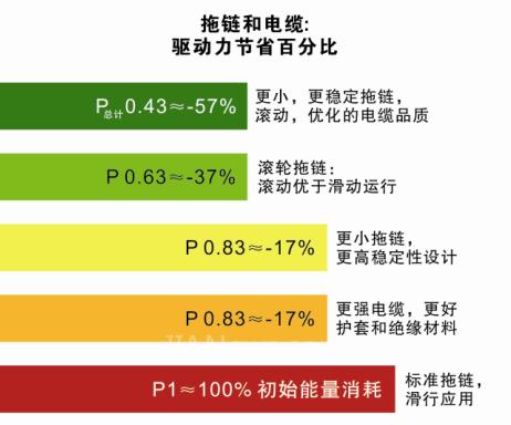 滚轮拖链降低摩擦系数,从而降低驱动力