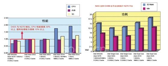 Intel ® Dual Core TM Atom TM 性能对比图 Intel ® Dual Core TM Atom TM 功耗对比图