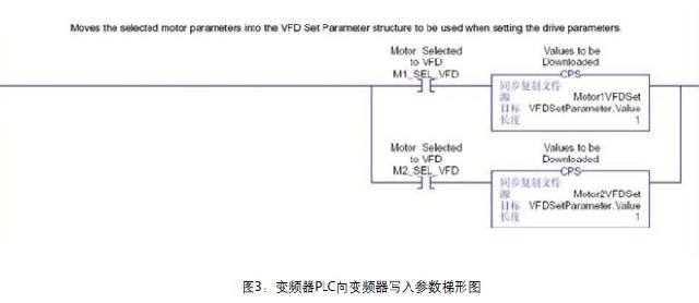 到理想的控制效果,在起动前由PLC写入针对该马达的控制参数。程序如图3所示。