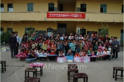 这次,邦纳公司不仅为老师带去了四台笔记本电脑,并且为他们带去了从小学一年级到五年级的语文分级阅读教材等其他学生捐赠的课外书籍,又一次丰富了学校的图书馆,,并为学校添置了篮球、足球、长绳、三毛球等运动器械。更有经销商朋友为学校的每一位学生带去了铅笔、圆珠笔、橡皮、作业本等文具。