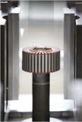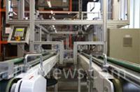 “比如占地面积小得多,与传统的机械装置相比,新设备的性能显著增强,因为可以不使用用来在正确方向输入定子的长传送带和旋转张紧系统。多达15只定子可以以任意方向放置在一条简单的传送带上。然后夹持器拾取定子,带到光学传感器处,使之触发,在仅停顿半秒钟的时间内通过导槽的位置确定并分析定子的精确旋转。此外,传感器也识别不同定子型式(有24或者36个槽),使之自动混合运行。