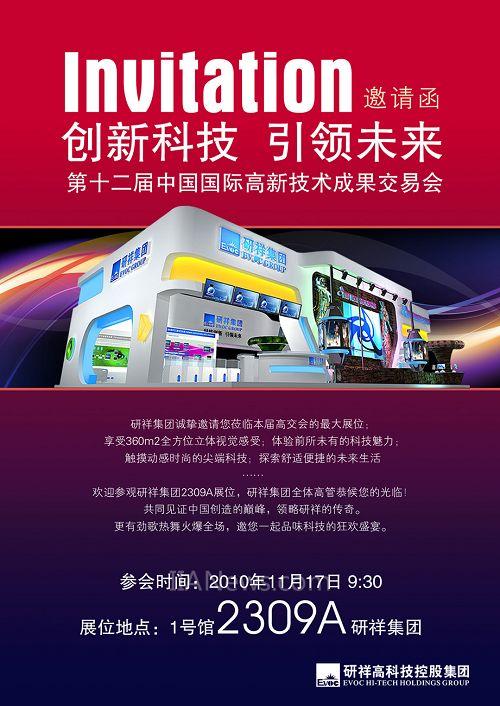 第十二届中国国际高新技术成果交易会(简称高交会)将于2010年11月16日至21日在深圳会展中心举行。本届高交会以“科技引领转型,创新驱动发展”为主题,紧密围绕经济结构和产业结构调整,促进加快发展方式转变和可持续发展能力的提高,着力彰显高交会的高新技术成果与资本对接的平台价值。今年高交会,适逢深圳特区建立30周年,走过了十一年的高交会,孕育出了腾讯、研祥科技、航盛电子、同洲、金蝶、大族激光等著名企业,在这个“中国第一科技展”的巨人肩膀上,它们与资本结缘,实现了腾飞的梦想。