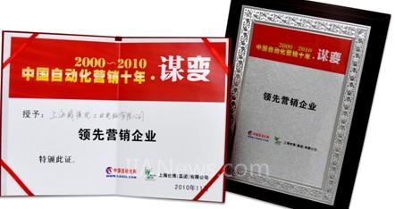 上海,2010年11月10日,作为全球工业电脑业界的领先品牌威强工业电脑(中国)公司喜获“中国自动化营销十年•领先营销企业”奖。该评奖是由中国自动化网联合中国工博会、品牌中国联盟以及业内多家权威组织举办的中国自动化营销盛典,数百家业界知名品牌厂商汇聚一堂,分享这一工控营销盛宴。据悉,本次的颁奖典礼是中国自动化营销十年(2000~2010)系列活动之一,以“谋变”为主题,包括高峰论坛及评选活动,旨在表彰推动中国自动化营销模式升级的产业巨擘、营销典范。