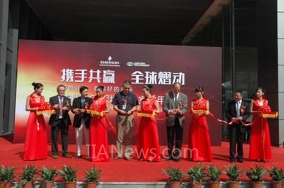 剪彩仪式-(左起: CT全球研发副总裁Tom Alexander先生, CT亚太区副总裁CK Fong先生, 艾默生网络能源有限公司总裁Stephen梁先生, CT全球总裁Mark Bulanda先生,艾默生CT中国董事总经理易全庚先生)
