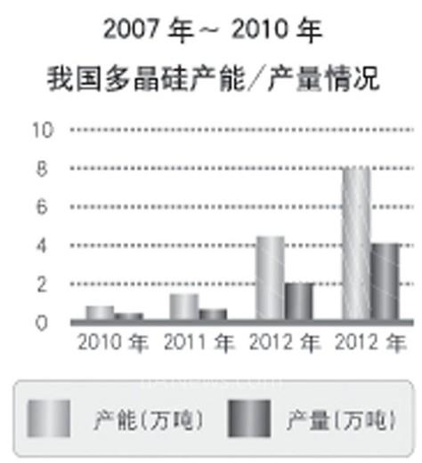 2007年、2008年和2009年我国多晶硅的产能分别达到1093吨、4685吨和20357吨,今年产能和产量有望分别超过8万吨和4万吨。多晶硅项目投产期约为2年,而从2009年下半年至今,多晶硅项目受制于国务院38号文,新建/扩建的项目较少,预计2011年~2012年,我国多晶硅产能变化不大。