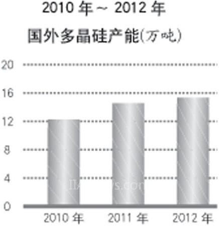 目前,国际多晶硅企业主要以传统的7大企业为主(Hemlock、Wacker、REC、MEMC、德山、三菱、住友),在2008年之前他们占据了90%以上的市场份额。2008年之后,韩国OCI公司异军突起,产能急剧扩大,目前已达到17000吨。据根据目前统计的数据,2010年~2012年国外的多晶硅产能已分别达到12万吨、15.4万吨和15.9万吨。随着市场需求不断升温,这些多晶硅企业凭借技术和资金优势,也在加快布局,并纷纷宣称要扩大产能。预计2012年之后,这些国际大厂的产能将重攀新高。