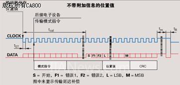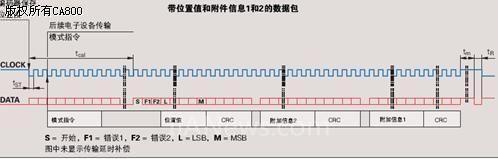 在每一帧同步数据传输时一个数据包被发送,传输循环从时钟的第一个下降沿开始测量值被保存,计算位置值。在两个时钟脉冲(2T)后,后续电子设备发送模式指令“编码器传输位置值”(带或不带附加信息)。