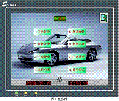 从主控画面可选择进入各控制及运行画面等。在主画面上,可以看到各处操作画面以及监控画面等。