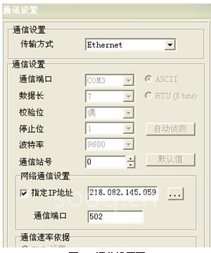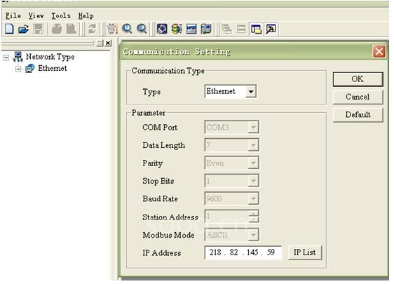 (1)在PC2上打开WPL软件,在通讯设置中,选择“Ethernet”,选择指定IP为ADSL的IP地址:。如果该IP地址下连接了多台设备(RS485),则可通过图8中的通讯站号来区分。可实现分别对各台设备进行监控操作。
