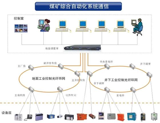 矿井综合自动化控制系统主要由信息管理系统、矿井环境安全监测监控系统、生产设备自动控制系统及视频监视系统等组成,在地面的中央调度控制室就可实现对全矿井各生产环境和设备的监视和控制,在提升矿井生产效率和安全生产中起至关重要的作用。由于煤矿矿井自动化控制和环境监控系统运行环境的特殊性,对通信设备隔爆安全、防尘、防潮要求极高,对通信系统的可靠性和抗恶劣环境能力提出了很高的要求。采用奥博通信AOBO隔爆型工业以太网交换机,在环境恶劣、人员设备分散、有特殊安装要求的煤矿构建安全、可靠、高速的综合信息传输平台,并使得矿井综合自动化系统与煤矿企业的Internet/Intranet整体架构实现无缝连接。