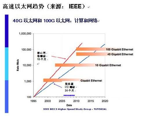 2010年6月,IEEE适时行动,正式采纳了IEEE标准 802.3baTM,为40G以太网和100G以太网的发展铺平了道路。随着速度的提升,网络能够将新发现的10G以太网 资源移动到接入层,让更强大的40G以太网设备处理聚合层及核心层的流量。分析师的预测和原始设备制造商的全力开发说明,40G以太网必将成为 IT 环境不可或缺的一部分,剩下的只是时间和方式问题。
