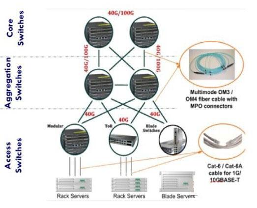 图 8:整个数据中心网络中的40/100G以太网部署
