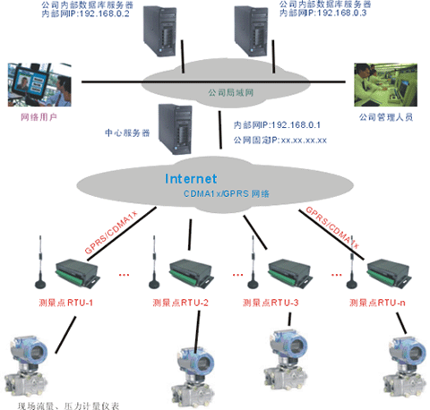 现场采集终端获取流量及天然浓度等现场生产数据后,通过CDMA1x或其它通信方式及时将数据发送到中控室监控主机,实现了远程抄表,无需人工现场抄表,极大地提高了员工工作效率,降低了劳动强度。