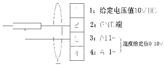煤气风机拖动机构由一台22kw交流异步电机驱动,采用acs800-30kva变频器控制。风机变频器通过外部电位器设定值与煤气进口管道内压力实时测量值相比较,作为增压变频器调速初始给定信号,并通过pid调节功能修正后,作为实际频率控制给定值,实现风机转速调节,达到恒压控制的目的。其系统原理如图1所示;其变频器模拟信号接线如图2所示。