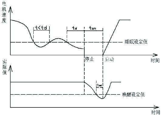 注:1、td—睡眠延时设定时间值;tsm—睡眠时间;tdw—唤醒延迟时间设定值。2、诊断:在控制盘屏前显示器上的报警信息“sleepmode”。