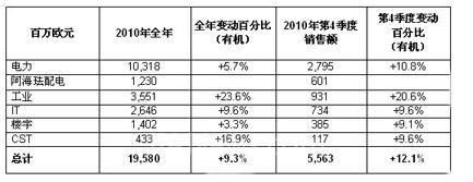 新兴经济体的销售额在第4季度同比增长15%,在2010年所报告的全年销售额(包括阿海珐配电)中占到37%。