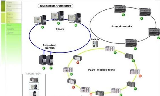 ECHELON公司的LONWORKS系统采用许多制造商生产的、经过认证的设备、将其集成为单一的智能楼宇系统,用以启动主要的楼宇子系统—安全、照明、电梯、HVAC等系统。而且,在楼宇局部改建或整个大楼新建时,用户可从自己选定的销售商那里选购商品和服务、而无需担忧被“锁定”在一个销售商上身上。使用专用控制器或网络的多层体系结构会约束数据检索、导致单点故障、形成瓶颈、增加复杂性和限定从一个销售商选择产品和服务。由LONWORKS智能路由器建成的开放、无缝网络允许从网络的任意点访问任何设备、可降低系统的购置、运行和扩展等费用。为将错误风险降到最低,并确保应用完整性,PCVUE 可通过外部开发的工具共享变量的配置数据库。这种双向连接存在于PCVUE通过Windows版LONMAKER用于LONWORKS。只需通过导入公共变量就可实现共享。然后,PCVUE通过其它产品的标准通信工具访问这些变量的实时值:用于LONWORKS网络的LonDB。对开发人员已创建对象模型(阀、引擎、传送机等)且每个包含一个变量集合的情形,共享也适用于这些模型。在PCVUE中增强了这些变量并按精确上下文进行了实例化,各实例连接到公共变量。想在一个项目内执行特定开发或设计出一个系统提案的集成商尤其受益于这些设施。PCVUE和LONWORKS网络之间的接口使用ECHELON提供的ActiveX控件(软件组件),称为LCA对象服务器。由LONWORKS数据库(LonDB)提供关于网络配置的信息,该数据库必须使用一个第三方配置工具事先创建。监控软件的LonWorks接口支持下列特征: • 与LNS 3.0兼容 • 支持网络变量和配置属性IP(SNVT、UNVT、SCPT和UCPT)。 • 支持LonMark对象和设备插件。