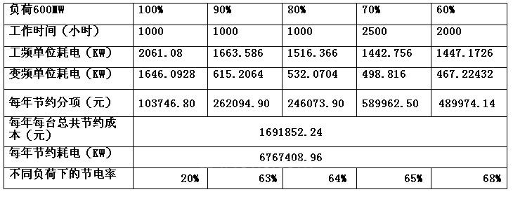 采用变频调速后,系统实现软启动,电机启动电流远远小于额定电流,启动时间相应延长,对电网无大的冲击,减轻了起动机械转矩对电机机械损伤,降低噪音,降低了震动系数,有效的延长了电机的使用寿命,减少了检修维护开支,节约大量维护费用,降低了厂用电率,提高了供电率.