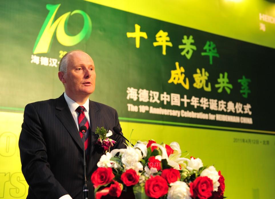 2011年4月12日,“十年芳华 成就共享”暨海德汉中国十年华诞庆典活动在北京顺义临空皇冠假日酒店隆重举行。中国机械工业联合会执行副会长赵驰、中国机床工具工业协会执行副理事长耿良志、中国机床总公司总经理郝明、北京天竺空港工业开发公司党委副书记董学仲等众多行业领导、专家和用户代表150逾人,齐聚一堂,共同回顾、成就共享,面向未来、携手奋进。
