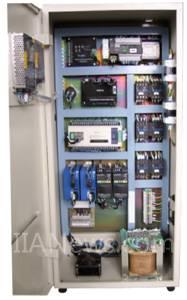 在OMRON喷气织机整体应用方案中(上图为OMRON喷气织机控制系统实物图),角度传感器采用了OMRON公司的E6B2-C型增量型光电编码器,可准确地给出织机任何定位角度,控制精度达1度。此编码器一路给PLC提供角度信号,一路给阀门控制板提供角度信号。