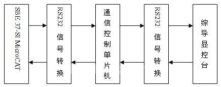 在图2中,通信控制单片机一方面负责接收数据,将接收到表达海水的状态参数的ASCII字符转换成数字类型,对该数字类型进行判断正负,把相应的空格置换成零,再转换为ASCII字符类型,添加上起始符$以及每个数据的头字母(即T、C、P、D、S、V、R),算出$以后所有字符的代码和,然后将代码和标志及代码和、回车符、换行符加上,最后通过RS232输出到综导显控台。另一方面,接收来自综导显控台的命令,然后发送给SBE 37- SI MicroCAT温盐深传感器,对传感器的响应完完全全地返回给综导显控台。因此综导显控台可以随时改变温盐深传感器的输出数据、数据输出的间隔时间以及他的状态,又可以接收到通用格式的数据。