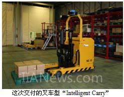 此次交付的18台叉车型“Intelligent Carry”(载重量:1t),余下4台小型叉车型“Intelligent Carry”(载重量:300kg)预计3月份交付。今后,这些“Intelligent Carry”将作为自动仓库和制造设备之间的材料自动搬送系统使用。而且,还同时接受了支持“Intelligent Carry”高效运行的运行管理系统的订货,并已交付。另外,叉车型“Intelligent Carry”的交付在国内外尚属首次。