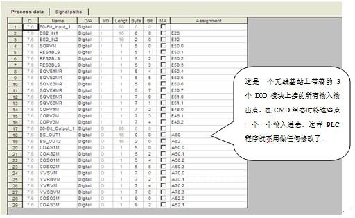 (1)在改造过程中最重要的是程序的编辑,就是在CMD组态中定义I/O点,将其与PLC程序中的I/O点一一对应起来。对点有两种方法,第一种方法是在CMD组态的过程数据字中仅仅定义一个字(例如E48),这样在PLC程序中将会自动生成I48.0~I48.7这8个输入点,这样做的话,在CMD组态时工作量很小,但在PLC程序中将面临大量的程序更改,很容易出错;第二种方法是在CMD组态时就一个一个定义模块上的过程数据字(见图3),这样做的话,PLC程序部分就完全不需要做任何更改,本文采用了第二种方法。