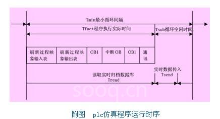 plc仿真程序运行时序如附图所示。如果同一时间点数据发送完成需耗时tsend、读取耗时tread,plc仿真程序主循环耗时需tfact秒。为了保证同一时间点数据被同步刷新必须满足以下条件: