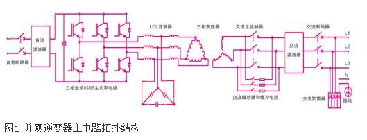 (4)逆变器。是将太阳能电池方阵和蓄电池提供的直流电转换成交流电的设备,是光伏并网发电系统的关键部件。由于太阳能电池和蓄电池是直流电源,当负载是交流负载时,逆变器是必不可少的。逆变器按运行方式,可分为独立运行逆变器和并网逆变器。独立运行逆变器用于独立运行的太阳能电池发电系统,为独立负载供电。并网逆变器用于并网运行的太阳能电池发电系统,本文主要介绍太阳能光伏并网发电系统[1]。如图1所示,并网逆变器由igbt等功率开关器件构成,控制电路使开关元件有一定规律的连续开通或关断,使输出电压极性正负交替,将直流输入转换为交流输出。逆变器按输出波型可分为方波逆变器和正弦波逆变器。方波逆变器电路简单,造价低,但谐波分量大,一般用于几百瓦以下和对谐波要求不高的系统。正弦波逆变器成本高,但可以适用于各种负载。
