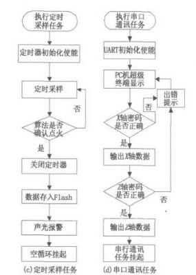 为增加系统的执行效率,实现多任务程序运行,系统通过移植,嵌入了μC/OS-Ⅱ操作系统。程序流程图中启动任务模块为嵌入μC/OS-Ⅱ操作系统时程序常用模式。