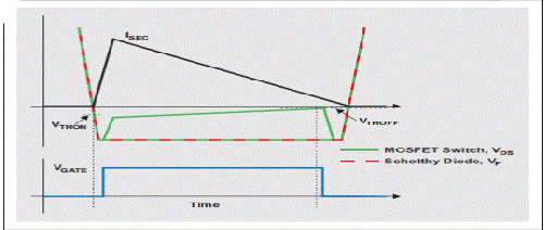 图 2 使用肖特基二极管和SR-MOSFET输出整流的简化反向波形