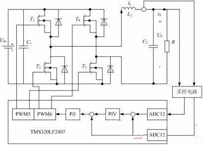数字UPS的正弦逆变器是时刻处于工作过程中,其工作原理是通过采样电路对逆变电路输出电压和电流进行采样,得到的采样信号输入到DSP中,对采样信号进行处理,依照一定的算法和程式来实现正弦逆变电路控制的功能。