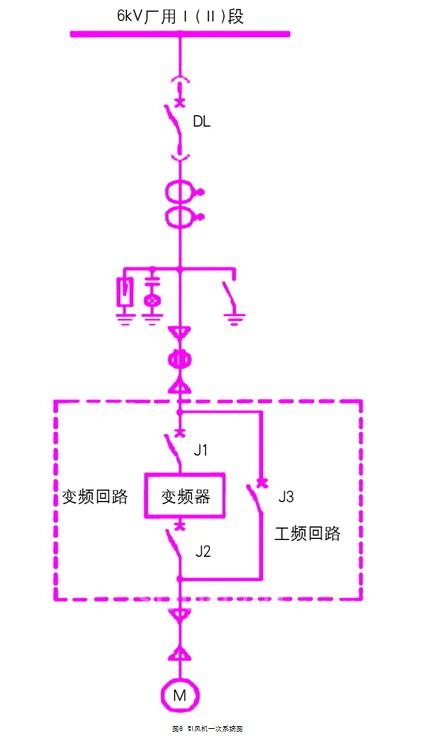 (5)工频转变频:由dcs发信号使j3分闸,j1合闸。延时2s后,j2合闸(躲开电机反电动势的影响),工频转变频完成。